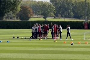 体育资讯9月30日讯 在本周的阿森纳训练场上,萨利巴完成与俱乐部的新合同签约后首次亮相训练,全队球员在开练前主动上前与他互动,纷纷拍了拍他的后背,送上祝贺与支持。