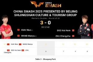 体育资讯10月1日讯 2025年WTT中国大满贯女双1/8决赛,王曼昱/蒯曼3-0杜凯琹/朱成竹,晋级八强。