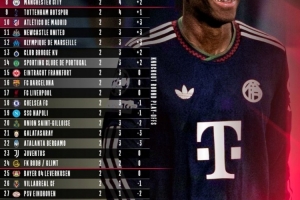 两战全胜的球队包括拜仁、皇马、巴黎、国米、阿森纳、卡拉巴赫,而拜仁与皇马同为6个净胜球,拜仁以多进一球优势领跑。