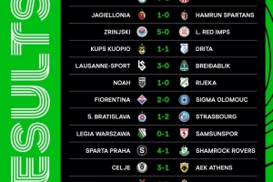 欧协联首轮比赛结果: