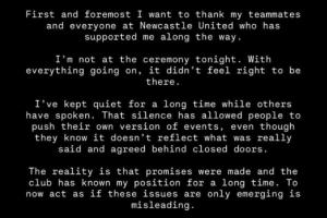 体育资讯08月20日讯 伊萨克社媒发表声明,解释为何没有出席PFA颁奖仪式,并且谈及自己的转会传闻。
