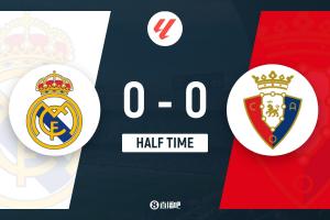 体育资讯8月20日讯 西甲第1轮,皇家马德里坐镇主场伯纳乌迎战奥萨苏纳。上半场,怀森、米利唐远射被扑,姆巴佩造险。半场战罢,皇马0-0奥萨苏纳。