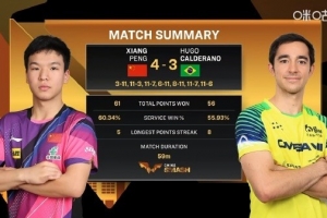 体育资讯10月4日讯 WTT中国大满贯男单1/4决赛,向鹏4-3战胜雨果-卡尔德拉诺,晋级男单四强,