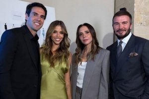 卡卡、贝克汉姆携夫人出席活动,卡卡社媒晒出四人合照。