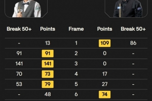 常冰玉打出一杆破百(141)和三杆50+(91、70、53),利亚姆·海菲尔德打出两杆50+(86、70)。最终常冰玉以5-3的比分战胜海菲尔德晋级32强。