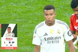 全场比赛结束,姆巴佩当选西甲官方全场最佳球员,本场造点并亲自主罚命中攻入皇马联赛首球!