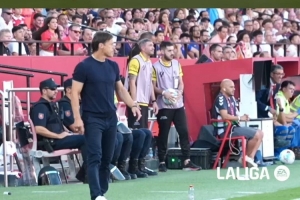 塞维利亚官方更新社媒动态,晒出卡尔莫纳攻入塞维利亚本场比赛第三球时场边的反应,球队主帅阿尔梅达振臂庆祝,并与助攻卡尔莫纳的阿古姆拥抱。