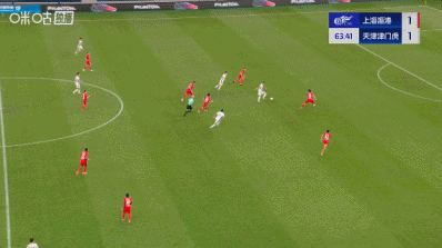 比赛第64分钟,津门虎在海港禁区内发起进攻,连续四脚打门被海港球员封堵。