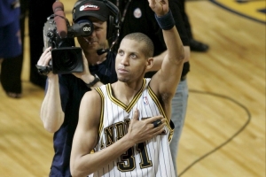 雷吉-米勒1987年NBA选秀首轮第11位被步行者选中,并效力至生涯结束。期间5次入选全明星,3次入选最佳阵容3阵,生涯一共命中2560个三分球,在退役前是历史第一,目前排名第六。