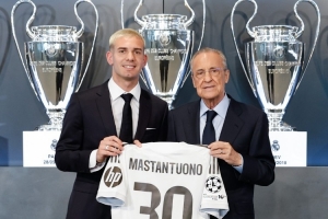 OptaJose的数据统计,18岁零5天的马斯坦托诺是皇马在西甲第三年轻首秀的外国球员。