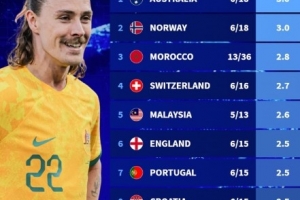体育资讯10月9日讯 德转统计2025年至今参加5场以上比赛的各国国家队战绩,澳大利亚、挪威六战全胜高居第一。