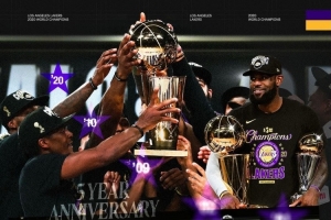 体育资讯10月11日讯 湖人官方社媒更新动态,回顾五年前的今天球队夺冠。