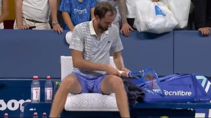 赛后梅德韦杰夫怒砸球拍,砸了个稀巴烂。这是他又一次大满贯一轮游,今年法网、温网、美网他均遭一轮游。