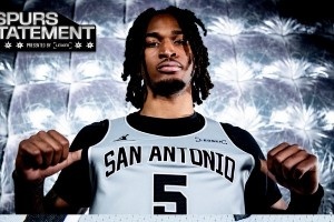 体育资讯10月13日讯 马刺官方发布了球队新赛季的宣告版球衣,并由斯蒂芬-卡斯尔上身展示。