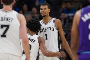 上半场文班亚马展现了自己的顶级天赋,他出战15分7秒,8投7中(三分2中2)、罚球3中3,高效砍下19分10篮板3助攻3抢断1盖帽的全能数据,美中不足的是6次失误过多,正负值为+8。