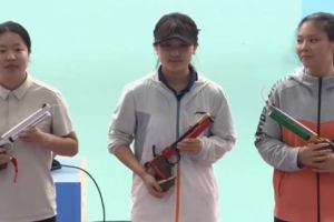 体育资讯10月16日讯 全运会女子10米气手枪决赛,广西队的唐晓获得金牌。