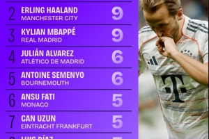 体育资讯10月17日讯 本周末,欧洲五大联赛将重燃战火。Squawka盘点了本赛季迄今为止五大联赛进球数情况,凯恩以11球居首,哈兰德和姆巴佩均打进9球紧随其后。