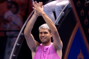 世界第一的阿尔卡拉斯发挥出色,以6-4、6-2轻松击败弗里茨,连续第二年闯入六王大满贯的决赛。