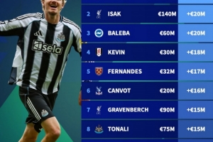 2、伊萨克,1.4亿欧,+2000万欧