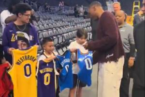 相关阅读:国王新援!威少到场观战 与湖人助教布鲁克斯开心交流
