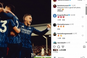 体育资讯10月19日讯 在本轮英超,阿森纳1-0小胜富勒姆,特罗萨德利用角球机会破门得分。