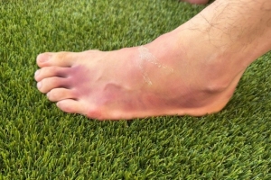 从图片中可以看出,商竣程左脚淤血严重。