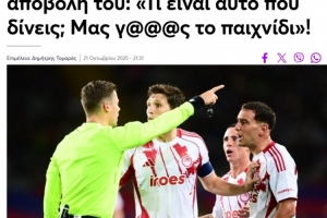 据希腊媒体gazzetta报道,在离场前,赫泽怒斥来自瑞士的比赛主裁施耐德:“你在搞什么?你TM毁掉了这场比赛!”
