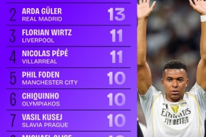 体育资讯10月23日讯 Squawka统计了本赛季欧冠目前为止的创造机会排行榜,姆巴佩位列第一,队友居莱尔第二,维尔茨第三。