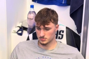 体育资讯10月23日讯 NBA常规赛,独行侠主场92-125马刺。赛后,独行侠状元弗拉格接受媒体采访。