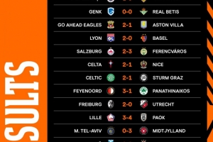 体育资讯10月24日讯 欧联杯联赛阶段第三轮比赛战罢,诺丁汉森林2-0波尔图,费内巴切1-0斯图加特,塞尔塔2-1尼斯,罗马、里尔、维拉落败。