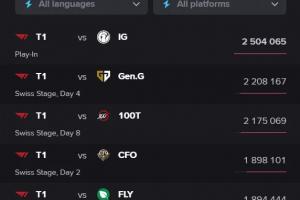 3-T1对阵100T:218万。