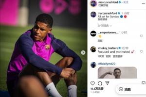 体育资讯10月24日讯 不久前,巴萨前锋拉什福德更新社交媒体,晒出了自己的训练照。