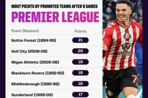 体育资讯10月26日讯 桑德兰在本轮英超焦点战2-1力克切尔西,延续了本赛季的出色表现。数据统计显示,他们在英超历史升班马中都位列前茅。