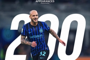 体育资讯10月26日讯 国米在本轮意甲焦点战对阵那不勒斯,迪马尔科出战达成国米生涯200场里程碑。