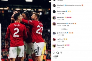 卢克-肖也在赛后通过社媒晒出和队友的相拥庆祝照,并配文:“让我们延续当前的势头!”