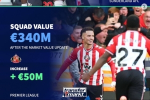 体育资讯10月27日讯 《转会市场》在近日已经更新了五大联赛球队身价,他们也据此列出了各大联赛最新身价更新后的身价(欧元)上涨和下降最多的球队。