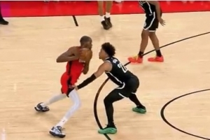 GIF-杜兰特被吹进攻犯规 火箭挑战