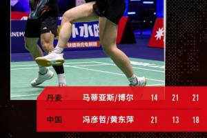 三局比分:冯彦哲/黄东萍 21-14、13-21、18-21 克里斯蒂安森/博尔(丹麦)