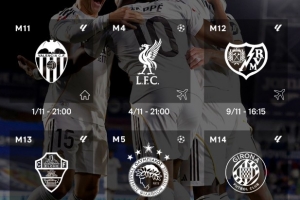 体育资讯10月30日讯 11月即将到来,皇马官方晒出了球队赛程。除了11月1日主场迎战瓦伦西亚外,西甲豪门将迎来5连客,其中包括前往安菲尔德挑战利物浦。