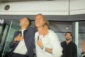 体育资讯8月27日讯 阿森纳球迷博主DailyAFC晒视频,梅里诺和卡拉菲奥里一起看演唱会。