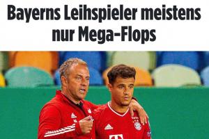 库蒂尼奥(33岁/2019年至2020年):他2019年夏天以850万欧元租借费从巴塞罗那加盟拜仁一年。他在38场比赛中打进11球,助攻9次,帮助球队赢得第二次三冠王。他在2019年12月对不莱梅的6:1比赛中帽子戏法并助攻两次,在欧冠四分之一决赛8:2大胜巴萨时也有两球入账。但整体表现不够耀眼,拜仁未行使买断权。