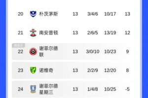 体育资讯11月02日讯 英冠目前已经进行了13轮,目前兰帕德执教的考文垂积28分,领跑积分榜。