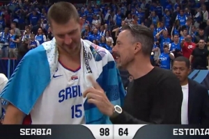 体育资讯8月28日讯 今天结束的一场男篮欧锦赛,塞尔维亚98-64大胜爱沙尼亚,取得开门红。