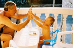 东契奇晒出一张自己儿时与家中长辈击掌的照片,并只配文了💔❤️的表情。