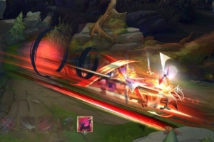 永恩释放凛神斩时向前顺劈,地面浮现出T1印记,随后五星标志依次闪烁,象征着五次冠军的无上荣耀。该内容来自于测试服,具体以正式服上线为准。