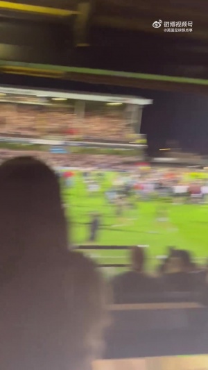 赛后,罚失关键点球的姆伯莫被冲场的格林斯比球迷嘲讽,队长B费保护他离开球场。