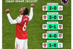 英超官方推特写道:“阿森纳已经连续7场比赛保持了零封,他们上一次连续8场零封对手还要追溯到1903年。”