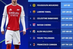体育资讯11月5日讯 欧冠联赛阶段第4轮比赛,阿森纳在客场以3-0的比分完胜布拉格斯拉维亚。本场比赛,阿森纳15岁小将道曼替补登场成欧冠历史出场最年轻球员。