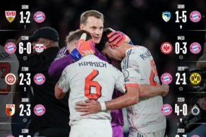 体育资讯11月5日讯 本轮欧冠,拜仁2-1战胜巴黎豪取16连胜,拜仁官方发布16连胜海报。拜仁的16连胜也继续刷新五大联赛最佳开局纪录,他们本月还将对阵柏林联合、弗赖堡、阿森纳以及圣保利。
