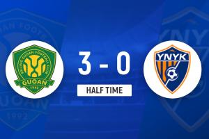 半场结束,北京国安3-0云南玉昆。